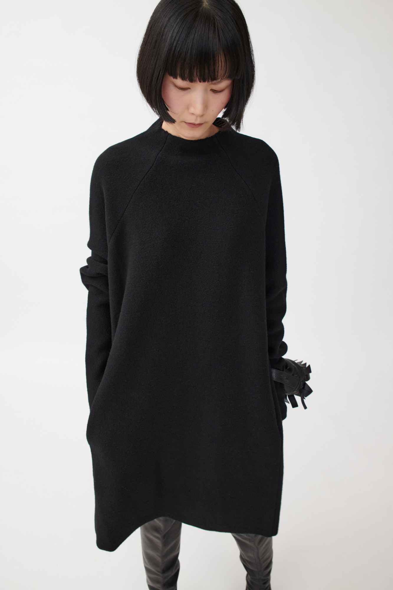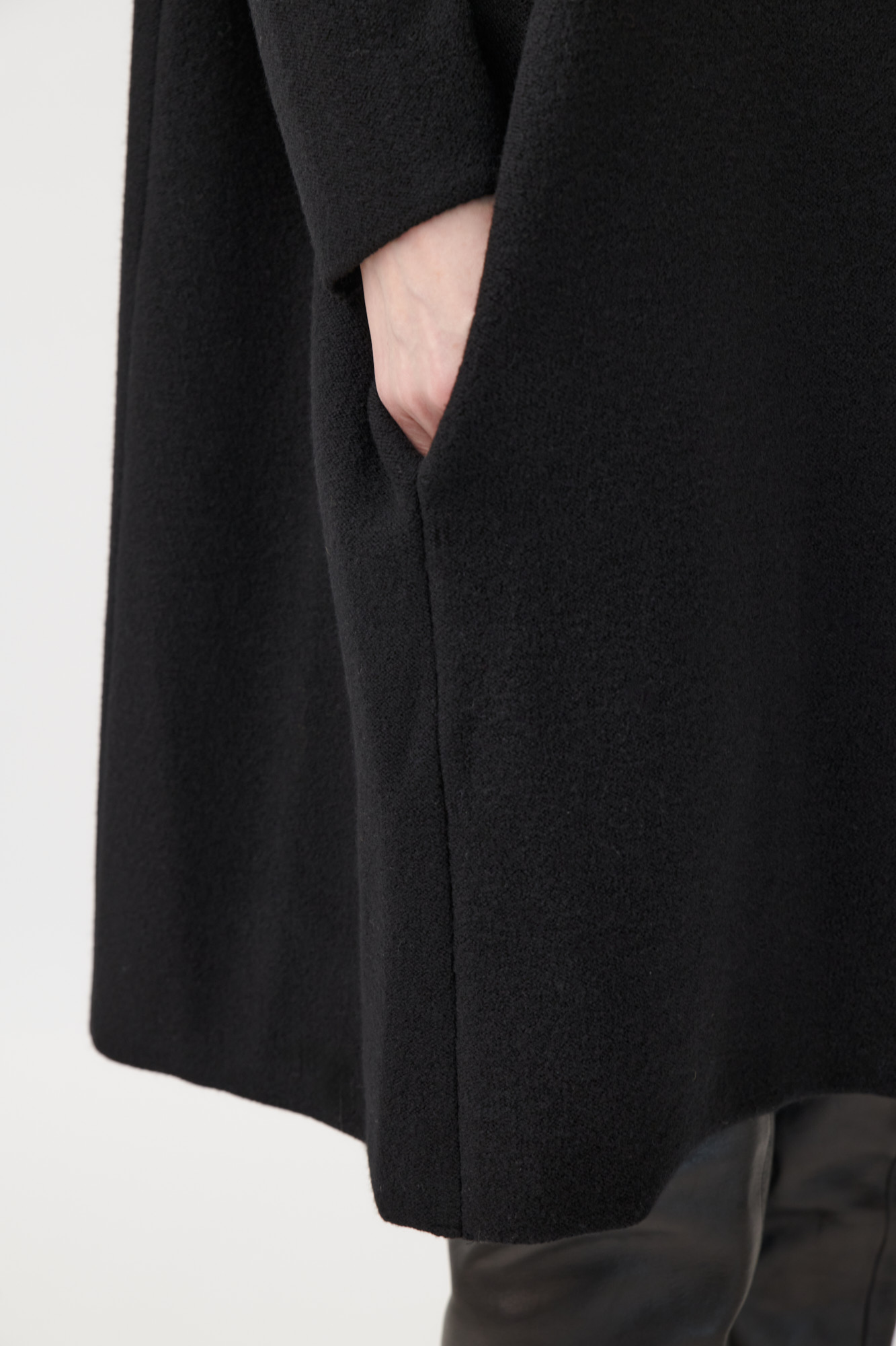 Das Annette Görtz Kleid Jazzy ist ein elegantes Strickkleid aus gewalkter Merinowolle. Es hat eine A-Linie mit nach vorne verlaufenden Seitennähten. Seitliche Eingriffstaschen, ein kleiner Stehkragen und lange Ärmel runden das puristische Design ab.