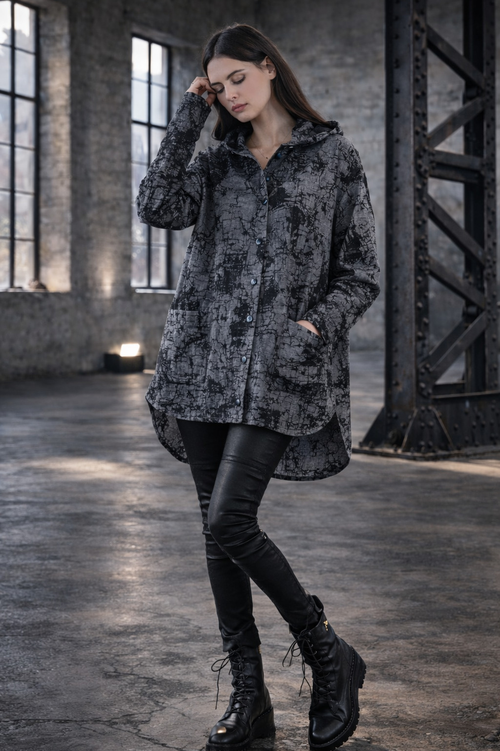 Ob zu schmalen Hosen, Leggings oder Jeans – diese Bluse ist ein markantes Statement-Piece für einen modernen, urbanen Look.