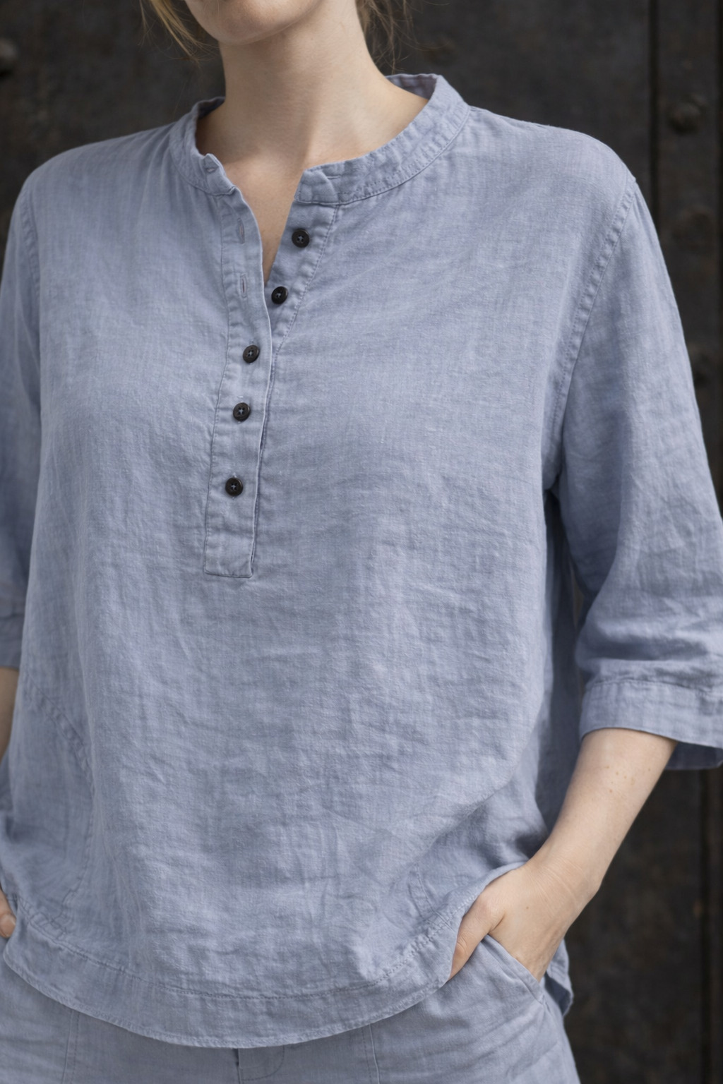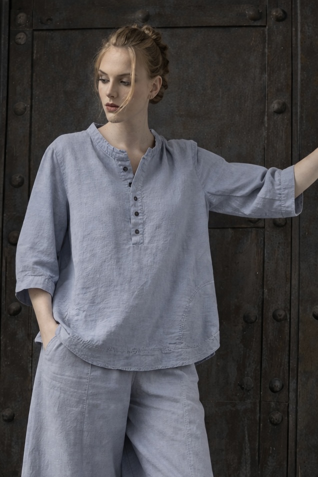 ELLi Leinenbluse mit 1/2 Knopfleiste / 100% Leinen